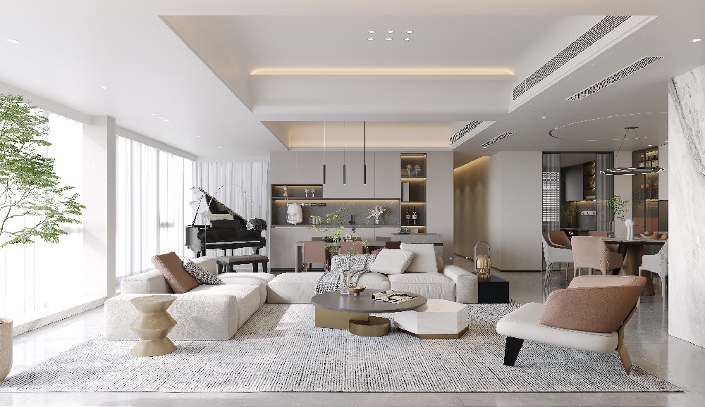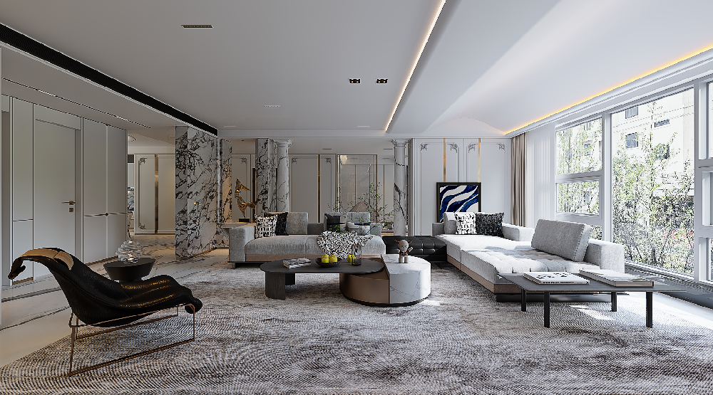 【裝修頭條】貴陽大平層裝修完工案例,未來方舟G6組團(tuán)288平米意式極簡風(fēng)格設(shè)計!